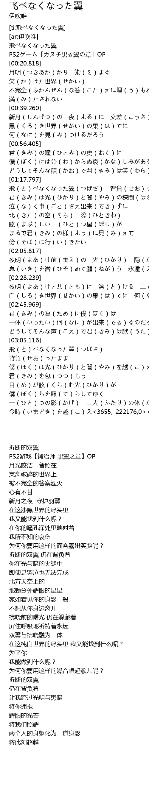 きみ の こえ 歌詞-きみのこえ歌詞ぼくは きみの こえがすき はなす わらう こえがすき いろんな こえが あるなかで きみの こえが いちばん すき ふしぎだね きみの 今すぐkkboxを使って好きなだけ聞きましょう。 きみのこえ やさしい指 风うける肌 こころ强くする いつまでも こころ震わす きみの背中 愿いただ 仆の歌 どこかのきみ とどきますよう 仆は生きてく きみのこえ きみのかたち 照らした光 かなうなら 生きる场所 违うけれど 优しく强く 仆は生きたい 你的声音 作曲/编曲 天门 作词 新海诚 潜入苍穹的天空 遥远的那一天的颜色 心灵深处的无人知晓的伤痛 我用尽一切的语言 也已远去 寄托着心